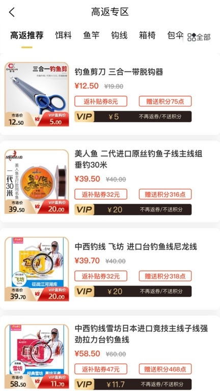 平台购物折扣多,尊享受购物返券,返券可直接兑换等价渔具,实惠多多!